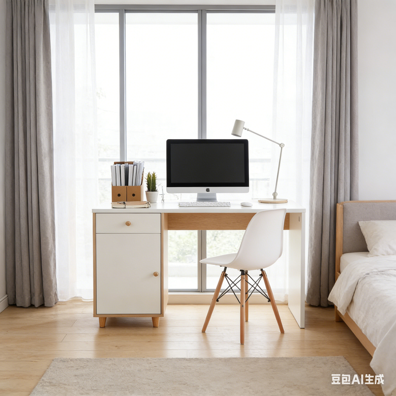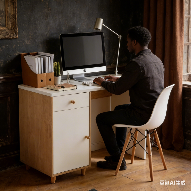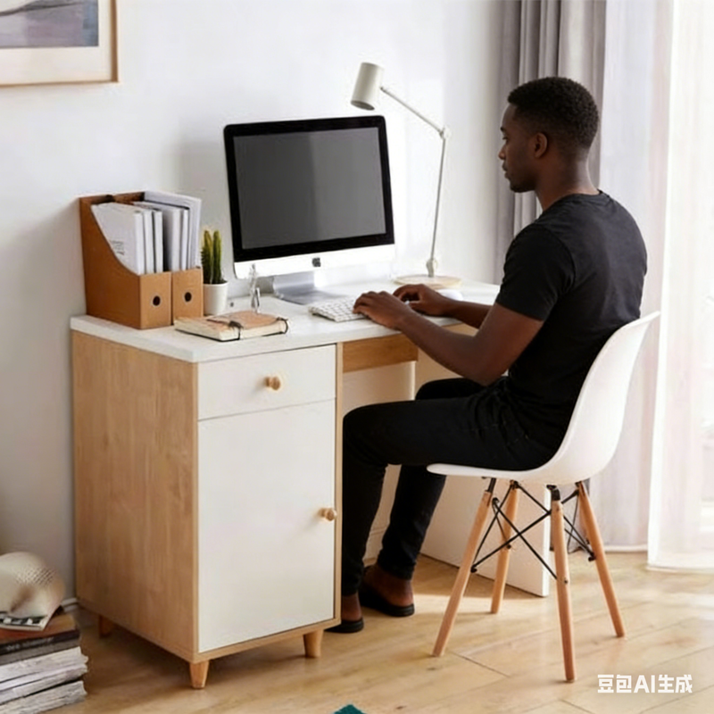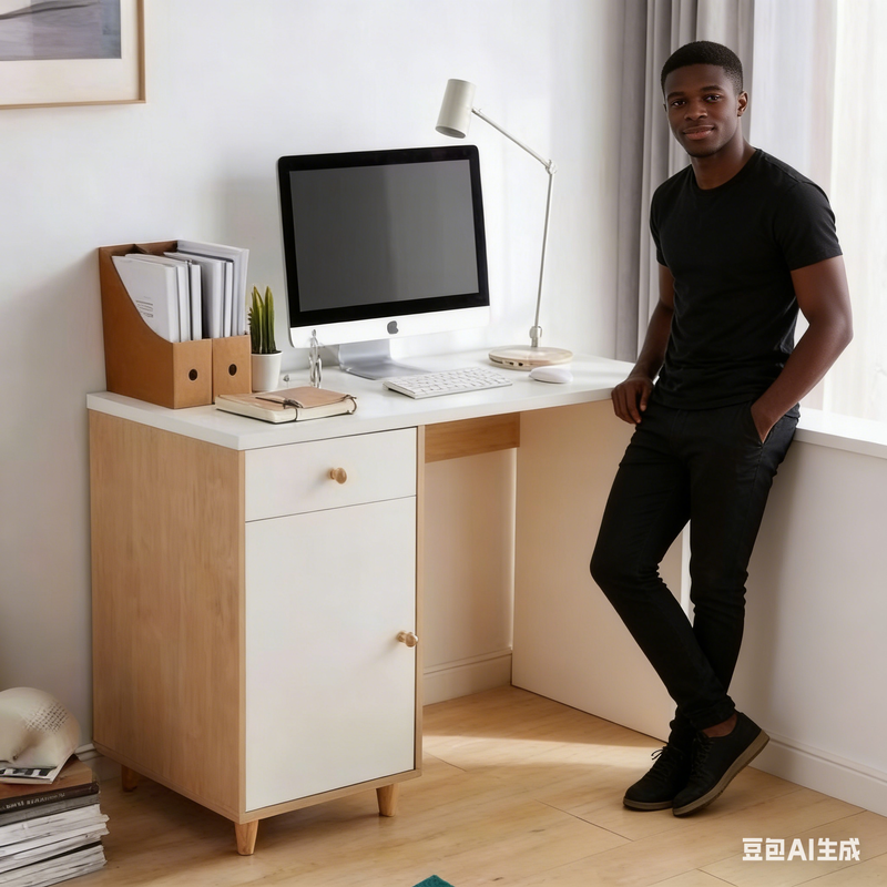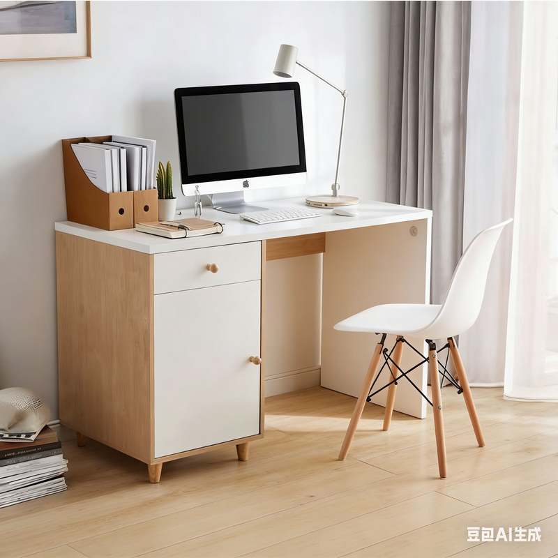 Conception avec rangement latéral gauche : La combinaison de tiroirs et de portes d’armoire permet de ranger documents, fournitures de bureau et textiles traditionnels, pour un bureau dégagé et une harmonie visuelle et spatiale.