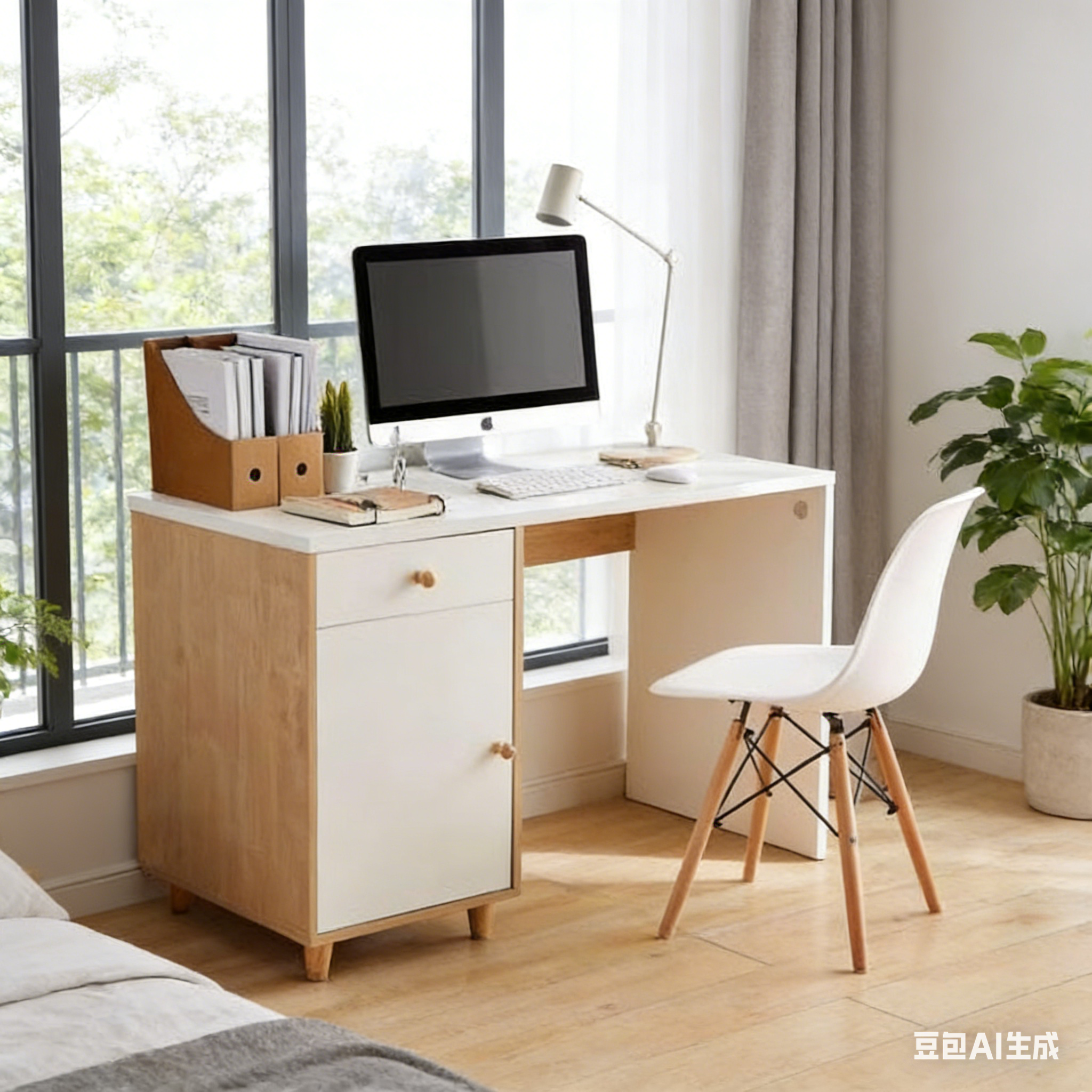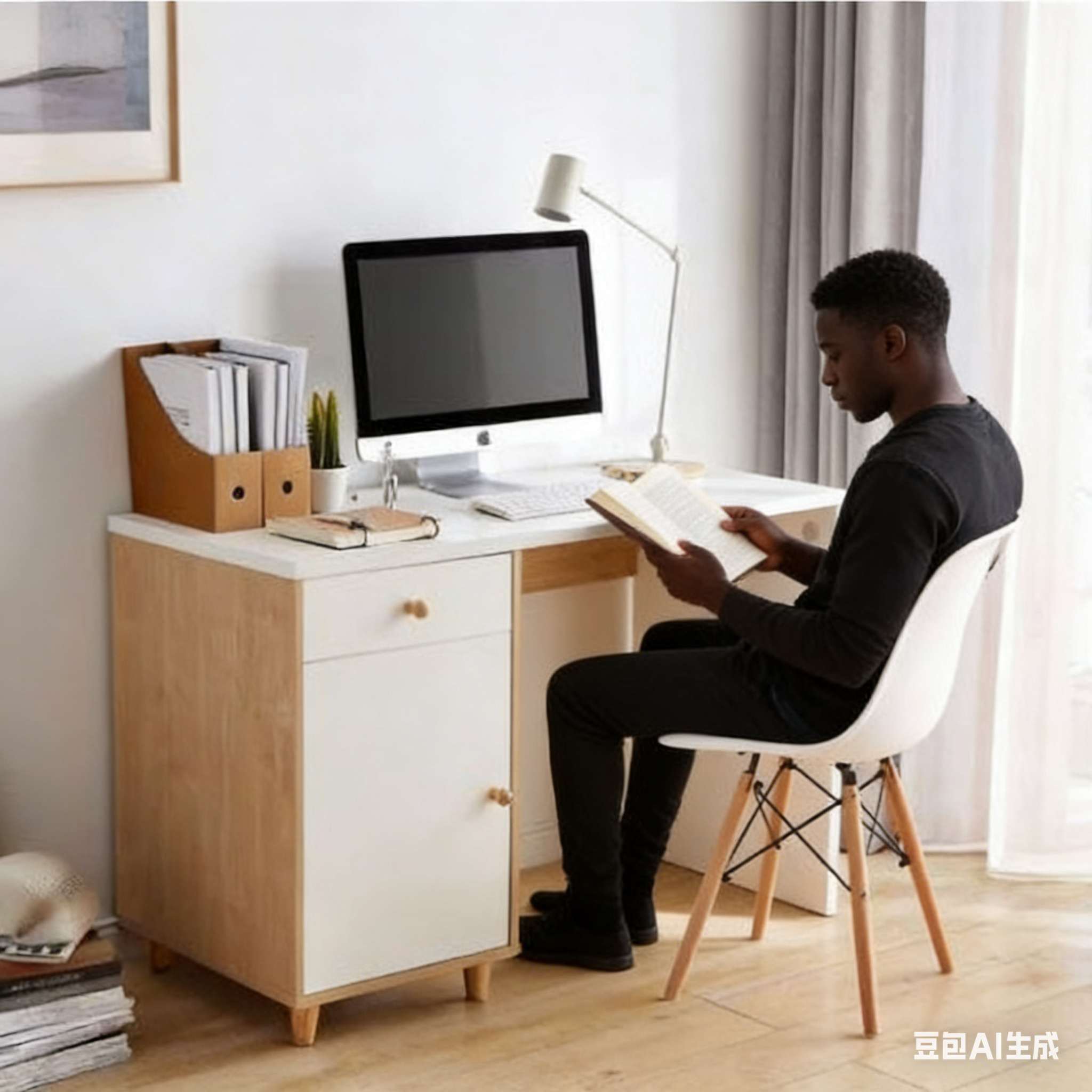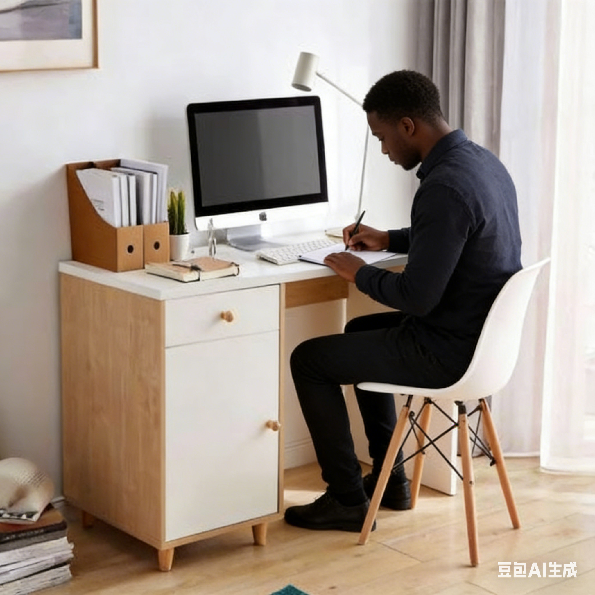 Conception avec rangement latéral gauche : La combinaison de tiroirs et de portes d’armoire permet de ranger documents, fournitures de bureau et textiles traditionnels, pour un bureau dégagé et une harmonie visuelle et spatiale.