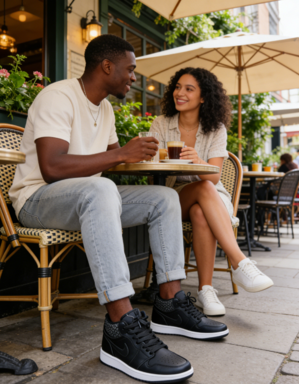 Caractéristiques polyvalentes : Son coloris noir et blanc et sa coupe basse/mi-montante la rendent idéale pour diverses occasions, du terrain de basket aux festivals de musique en passant par les sorties décontractées.