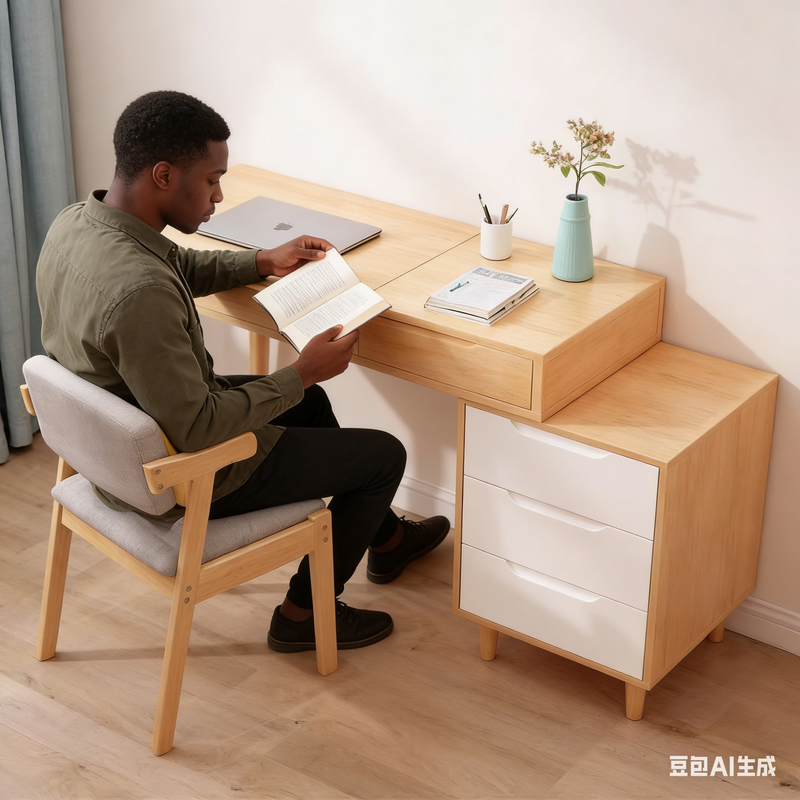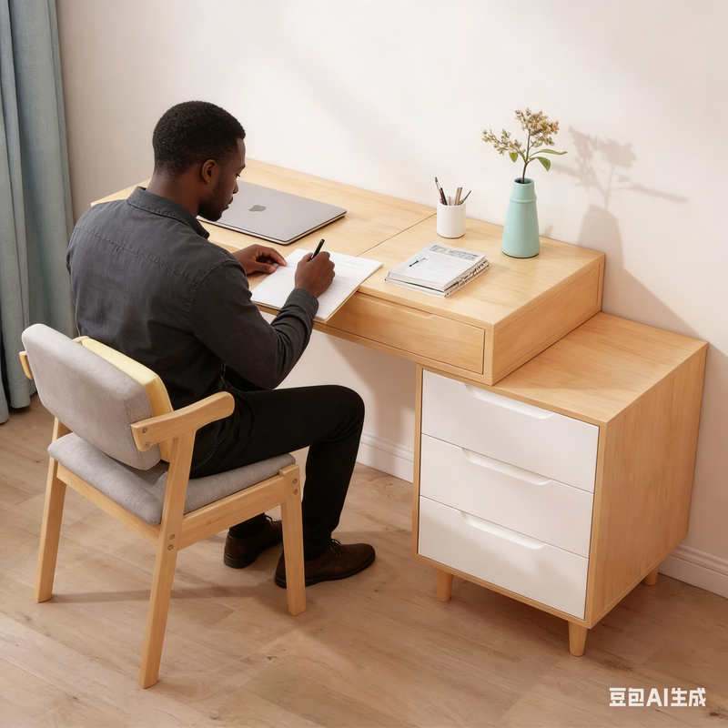 Des détails pensés pour l'humain, adaptés aux habitudes locales : des glissières de tiroir fluides et des compartiments de rangement dissimulés répondent aux besoins de plusieurs utilisateurs au sein des familles marocaines, offrant confort et praticité, que ce soit pour les devoirs des enfants, la lecture des aînés ou le télétravail.