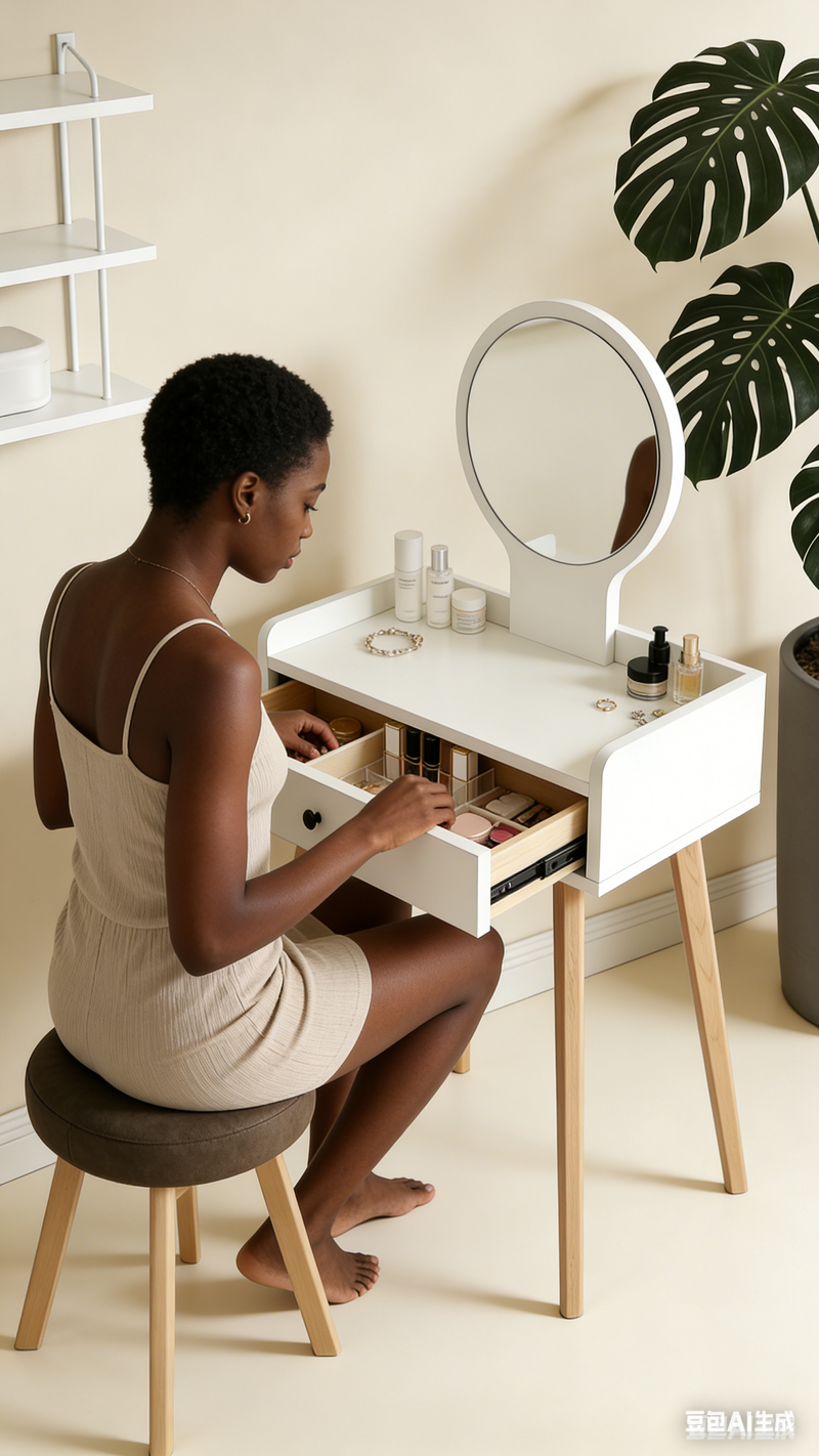 « Ma précédente coiffeuse était soit fragile, soit ne correspondait pas à mon style. Celle-ci a un magnifique grain de cèdre, son plateau s'harmonise parfaitement avec ma décoration intérieure, et le paiement à la livraison m'a rassurée. L'installation a été rapide et facile, et elle offre un grand espace de rangement. Je l'utilise depuis trois mois et elle est toujours impeccable. Je l'ai déjà recommandée à ma meilleure amie. » — Amina (Casablanca, 28 ans, salariée)