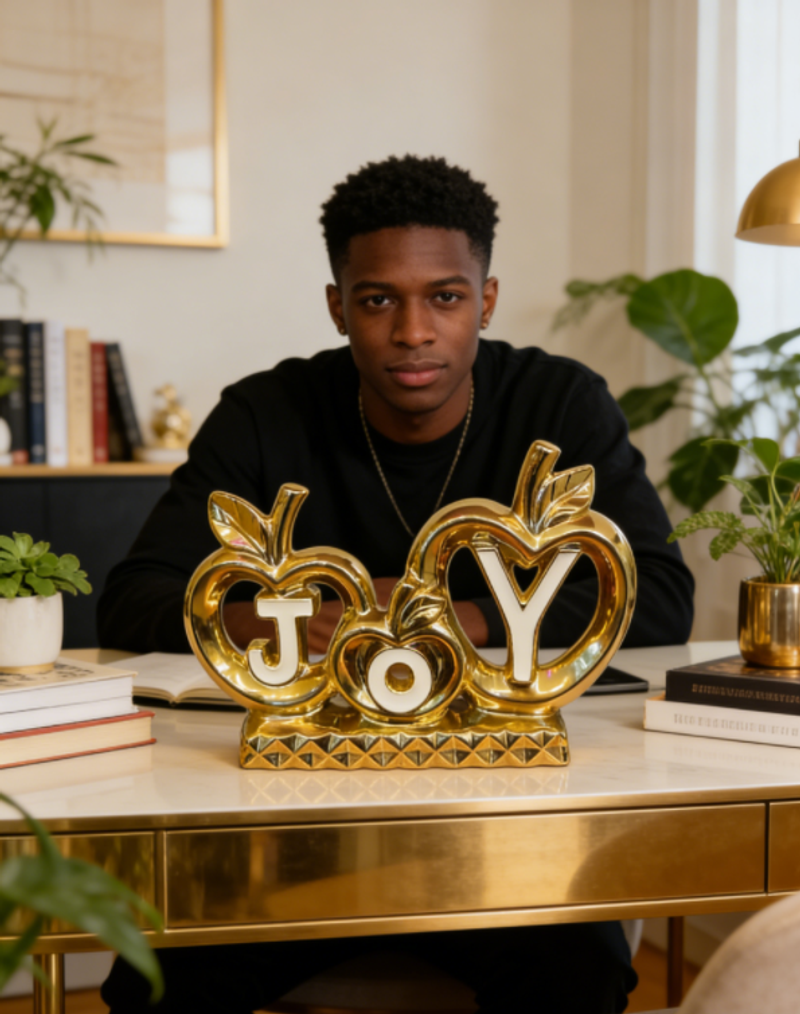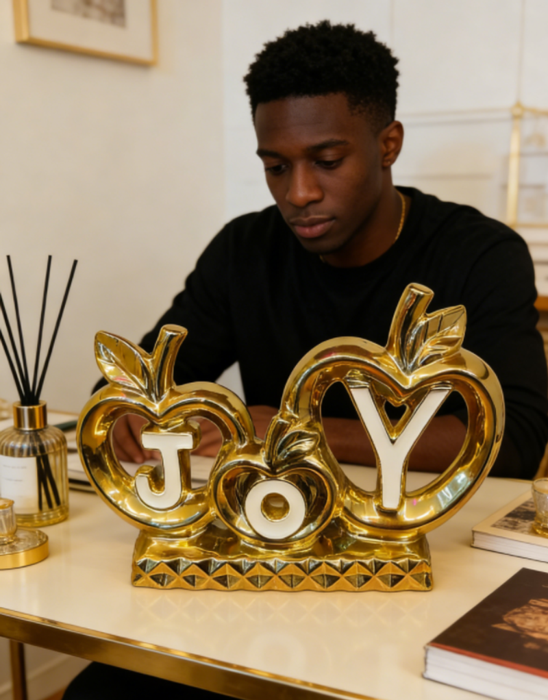 J'ai placé cette décoration JOY dans le salon de style marocain de ma cliente, et la couleur dorée s'harmonise parfaitement avec le mobilier traditionnel en bois ! Ma cliente dit qu'à chaque fois qu'elle la voit, sa maison rayonne de soleil et de bonheur, et elle l'a déjà recommandée à plusieurs amis. — Fatima Zahra | Décoratrice d'intérieur