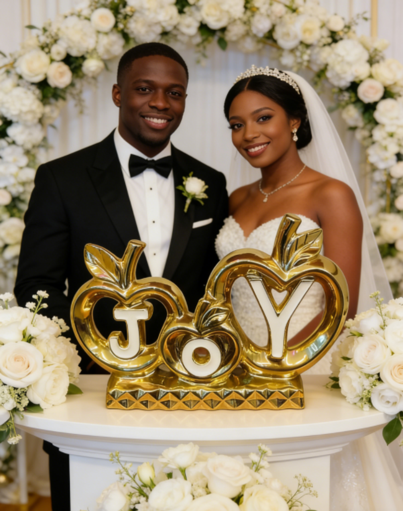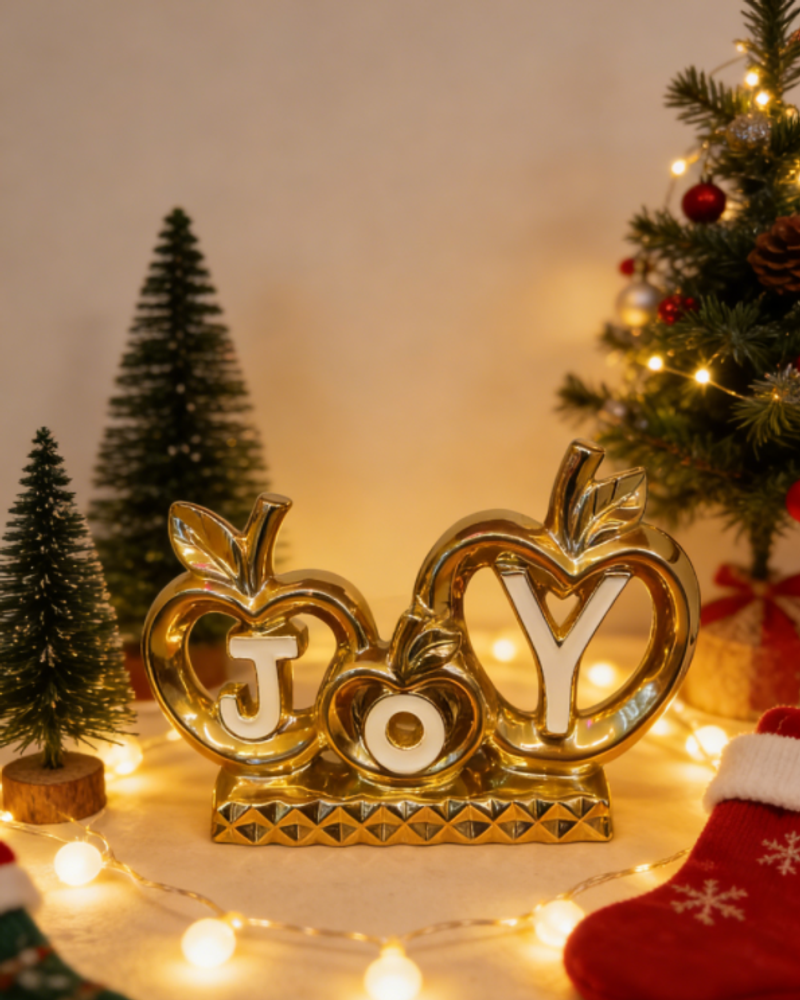 يرمز شكل التفاحة المفرغ والمزين بكلمة "JOY" باللون الأبيض إلى السلام والفرح، مما يجعلها هدية مثالية لحفلات الانتقال إلى منزل جديد، أو عيد الفطر، أو حفلات الزفاف، أو أي مناسبة أخرى.