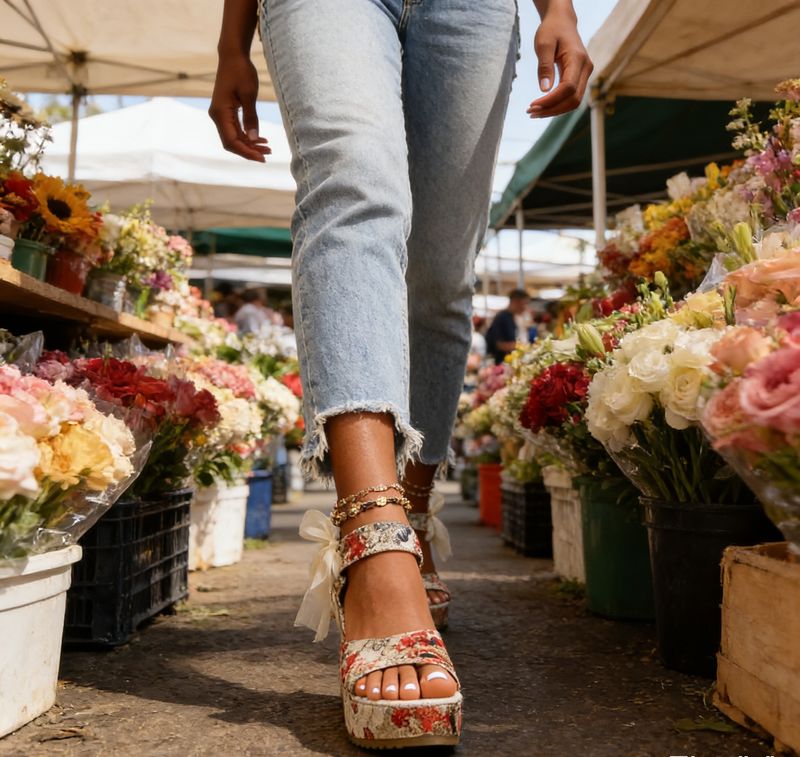 Sandales à Talons Compensés Florales