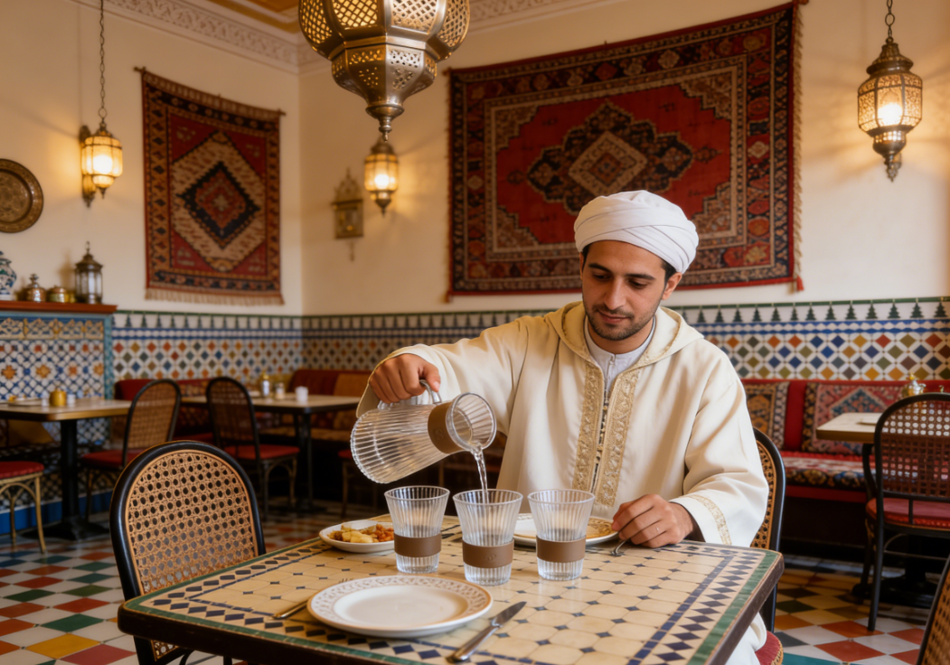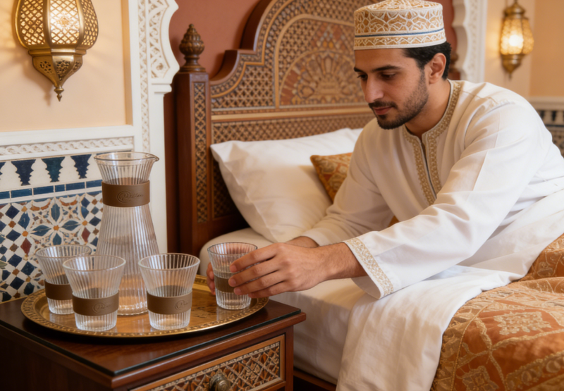 « Nous avons installé ce service à eau sur chaque table de notre restaurant, et nos clients marocains disent tous qu'il ressemble aux lampes en verre de la vieille ville ! Le verre rayé est particulièrement beau au soleil, et il sublime même le goût du thé. Beaucoup de clients nous demandent le lien après leur repas. » – Amin | Restaurateur à Casablanca