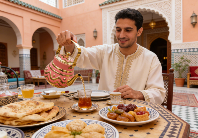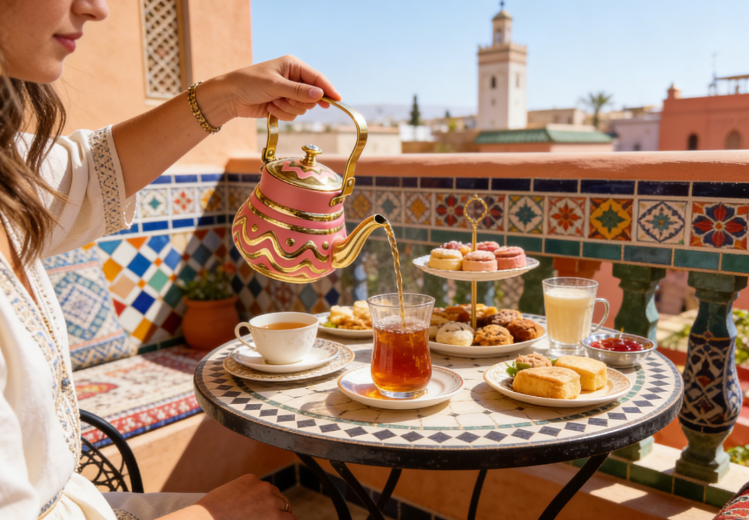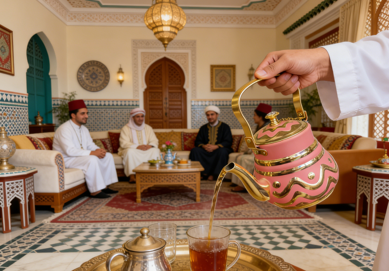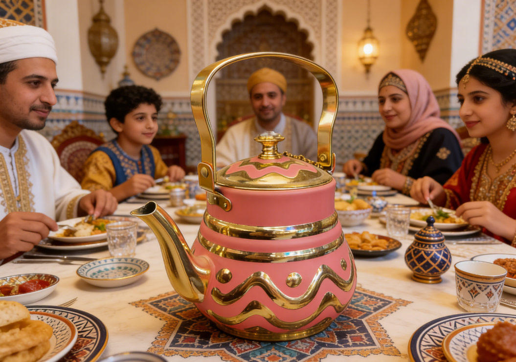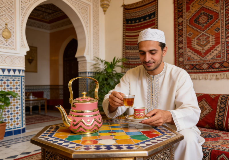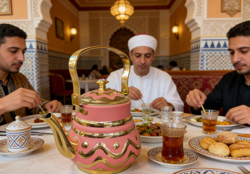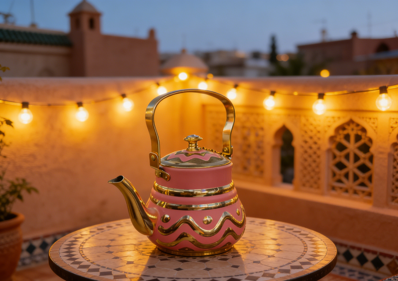 « J'ai placé cette théière dans la cour de ma maison d'hôtes, et dès leur arrivée, les clients se pressent autour pour la prendre en photo ! Ses couleurs rose et or s'harmonisent parfaitement avec les murs blancs de Casablanca. La théière chauffe à la perfection pour infuser un thé à la menthe. Nombreux sont ceux qui me demandent le lien avant de partir, car ils souhaitent emporter un peu de soleil marocain dans leur propre ville. » — Laya | Propriétaire de maison d'hôtes, Médina, Casablanca